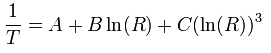 A,B和C是根據(jù)熱敏電阻的類型和型號(hào)以及感興趣的溫度范圍而變化的斯坦哈特 - 哈特系數(shù)。(應(yīng)用方程式的最一般形式包含(ln(R))2項(xiàng),但是這通常被忽略,因?yàn)樗ǔ1绕渌禂?shù)小得多,因此在上文中未示出)。