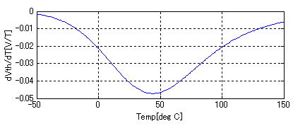 這里,從感興趣的溫度到電壓Vth的轉(zhuǎn)換靈敏度對(duì)應(yīng)于上圖中的曲線斜率。因此,上曲線斜率(差分dVth / dT)波形如下所示。