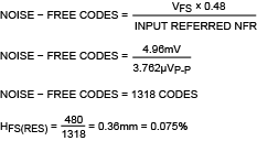 本設(shè)計(jì)中使用 的MAX11206是一款20位Δ-ΣADC,適用于需要寬動(dòng)態(tài)范圍的低功耗應(yīng)用。它具有極低的輸入?yún)⒖糝MS噪聲,在10sps時(shí)為570nV。我們知道無(wú)噪聲分辨率(NFR)約為6.6 x RMS噪聲。在這種情況下,NFR為3.762μV。(這有時(shí)也稱為無(wú)閃爍代碼。)通過(guò)將輸入?yún)⒖紵o(wú)噪聲位大小所使用的ADC范圍除以下,可以找到該范圍內(nèi)存在的無(wú)噪聲代碼: