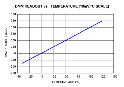 圖2.圖1電路的輸出電壓與溫度的關(guān)系。注:比例因子= 10mV /°C。