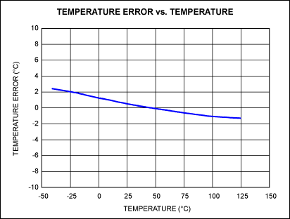 圖3.圖1電路的溫度誤差,相對于油浴中的鉑電阻標(biāo)準(zhǔn)溫度計。該電路在-40°C至+ 125°C范圍內(nèi)出現(xiàn)±2°C的誤差。