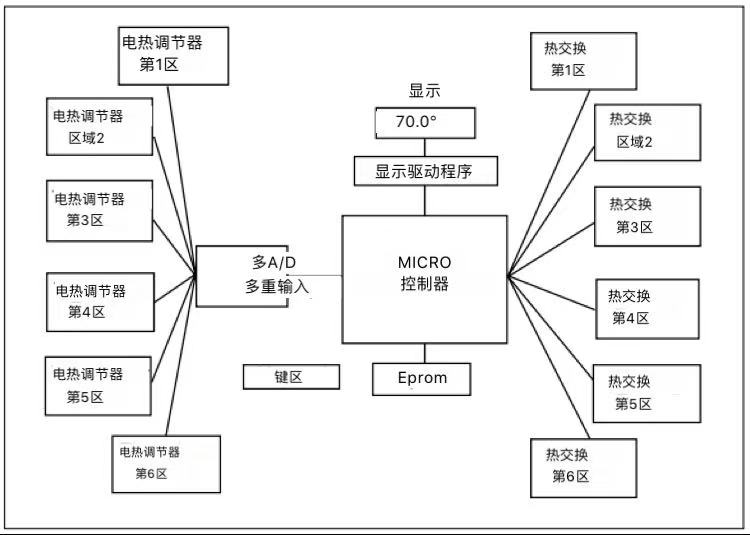 這種系統(tǒng)的一個例子如下所示??梢允褂帽O(jiān)視和控制其他區(qū)域唯一的額外成本是熱敏電阻組件。微控制器會通過確定熱敏電阻的溫度