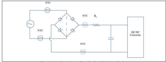 基本上。 NTC熱敏電阻是一個不錯的選擇限制這些類型的電路中的電流,因為它具有相對較高的阻力開始然后下降由于自熱而產(chǎn)生的阻力。