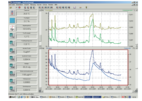 除了在硬盤上存儲(chǔ)數(shù)據(jù)外,該軟件還提供了一個(gè)非常重要的特性,即以濕度和溫度隨時(shí)間變化的圖表(在線劃線功能)的形式對(duì)所有測(cè)量和記錄的通道進(jìn)行圖形表示。 通過(guò)拖動(dòng)和點(diǎn)擊,窗口部分可以放大,時(shí)間或溫度軸可以根據(jù)需要進(jìn)行縮放。 除了圖形視圖之外,還可以以表格的形式表示。 中間空間用于將測(cè)量數(shù)據(jù)序列封裝成 電子表格程序或用于文字處理的程序。 所有表格和圖表都可以用彩色打印出來(lái)。 此外,軟件還集成了簡(jiǎn)單的監(jiān)控功能。 可以為每個(gè)通道設(shè)置限值。 當(dāng)超過(guò)該值時(shí)發(fā)出聲學(xué)信號(hào)(波形文件)。 最多可通過(guò)中繼卡控制8個(gè)外部用戶,中繼卡將連接在并行端口上。