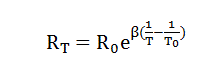 NTC熱敏電阻中電阻和溫度之間的關(guān)系由以下表達(dá)式控制: