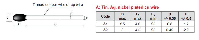 MF52熱敏電阻有5種引線形式標(biāo)準(zhǔn)或定制長(zhǎng)度。