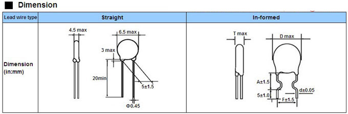 NTC熱敏電阻尺寸(單位:mm):