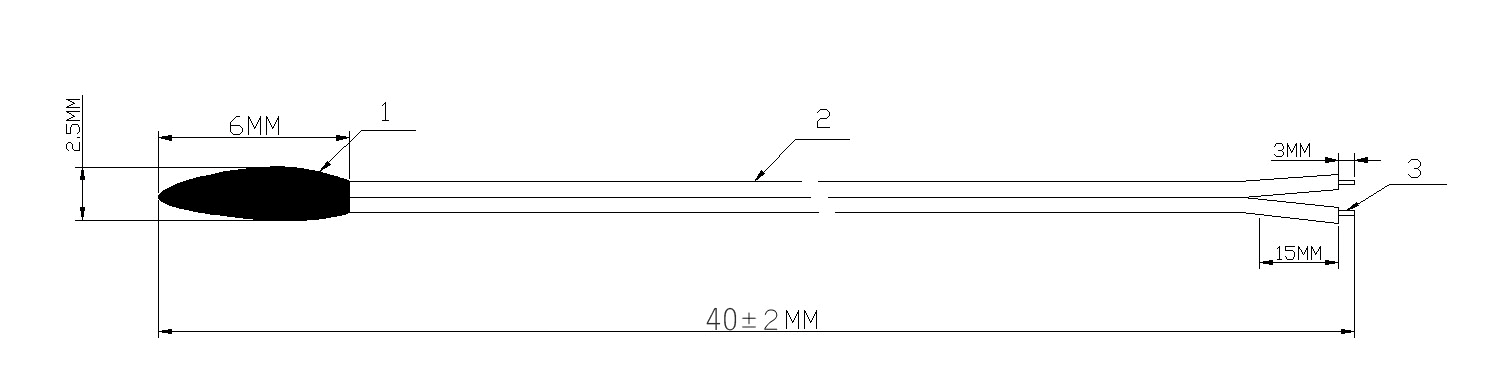 MF52D小皮線NTC熱敏電阻尺寸圖(mm)